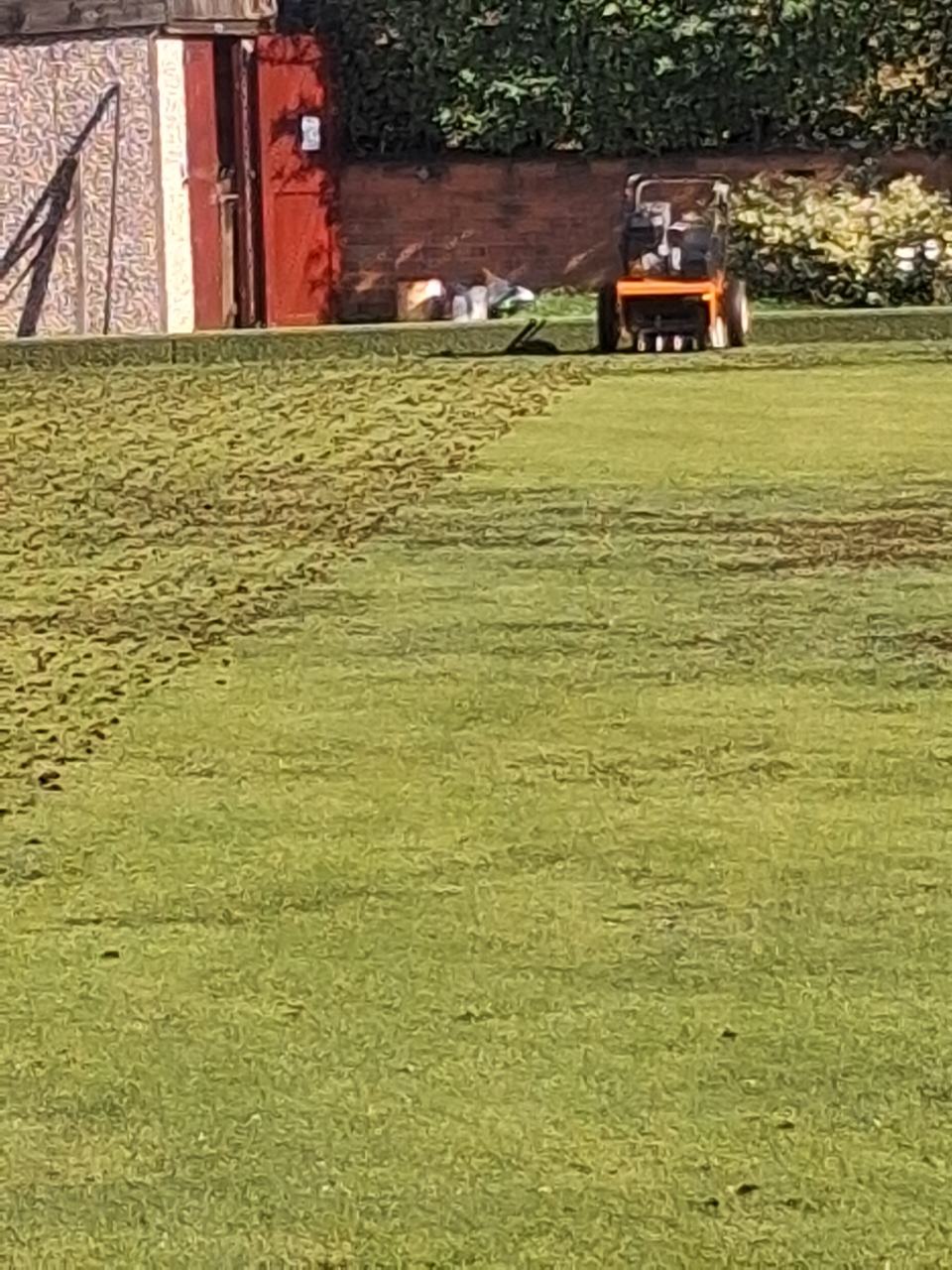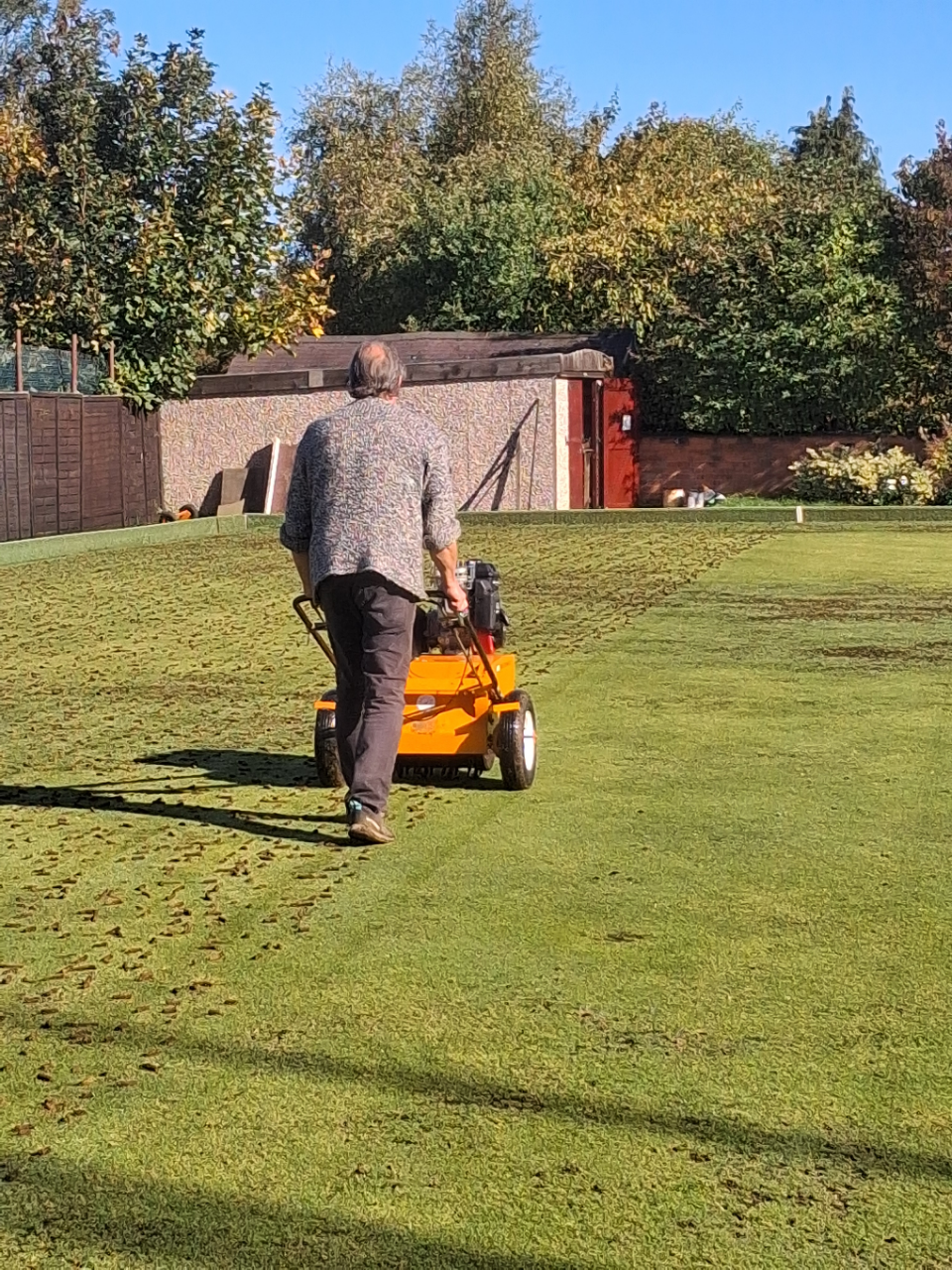 Following a difficult year experienced by the Green Keeper and his team, the whole green has been hollow tined today.